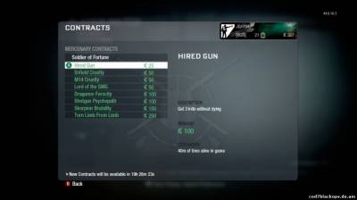 В придачу к ранее переведенным и опубликованным советам о том, как зарабатывать больше CR, играя в Call of Duty: Black Ops рады сообщить вам о том, что вскоре вас ждет около 400 новых контрактов, добавленных в предыдущем консольном-патче и следующем патче для РС. Решение о добавление новых контрактов в игру было принято, после того, как стали появляться жалобы о значительной легкости или, наоборот, о появлении контрактов, выполнить которые было практически невозможно. Таким образом Treyarch решили эту проблему добавив еще чуть более 400 новых контрактов, среди которых каждый сможет выбрать что-то себе по душе.